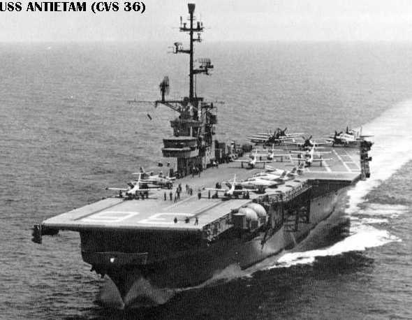 "Энтаэтам" авианосец класса Эссекс. Корабль задумывался как универсальное авианосное судно с возможностью ведения эффективной борьбы с подводными лодками. Корабли этого класса сформировали оплот авианосных соединей ВМС США во второй мировой войне, а после войны еще долгое время несли службу на Тихом океане. Кораблям класса Эссекс вообще и "Энтаэтам" в частности была присуща тенденция уменьшения длины взлетной палубы за счет размещения на ней большого количества пушек и пулеметов. 21 июня 1949 года корабль был выведен из военной ударной группы и отправлен в порт приписки. 17 января 1951 года авианосец вновь вступил в строй в связи с войной в Корее, тогда же корабль получил новое название - CVA 36 и стал классифицироваться как ударный авианосец. Однако уже 8 августа 1953 года после проведенной модернизации "Энтаэтам" стал противолодочным авианосцем (CVS 36).